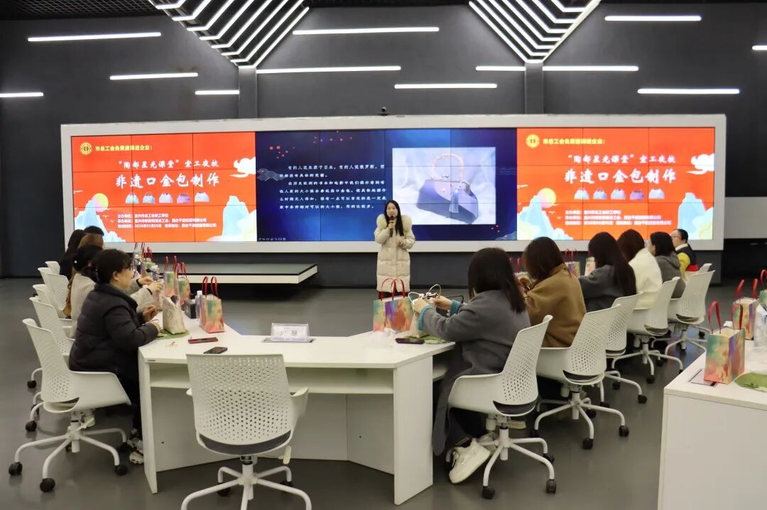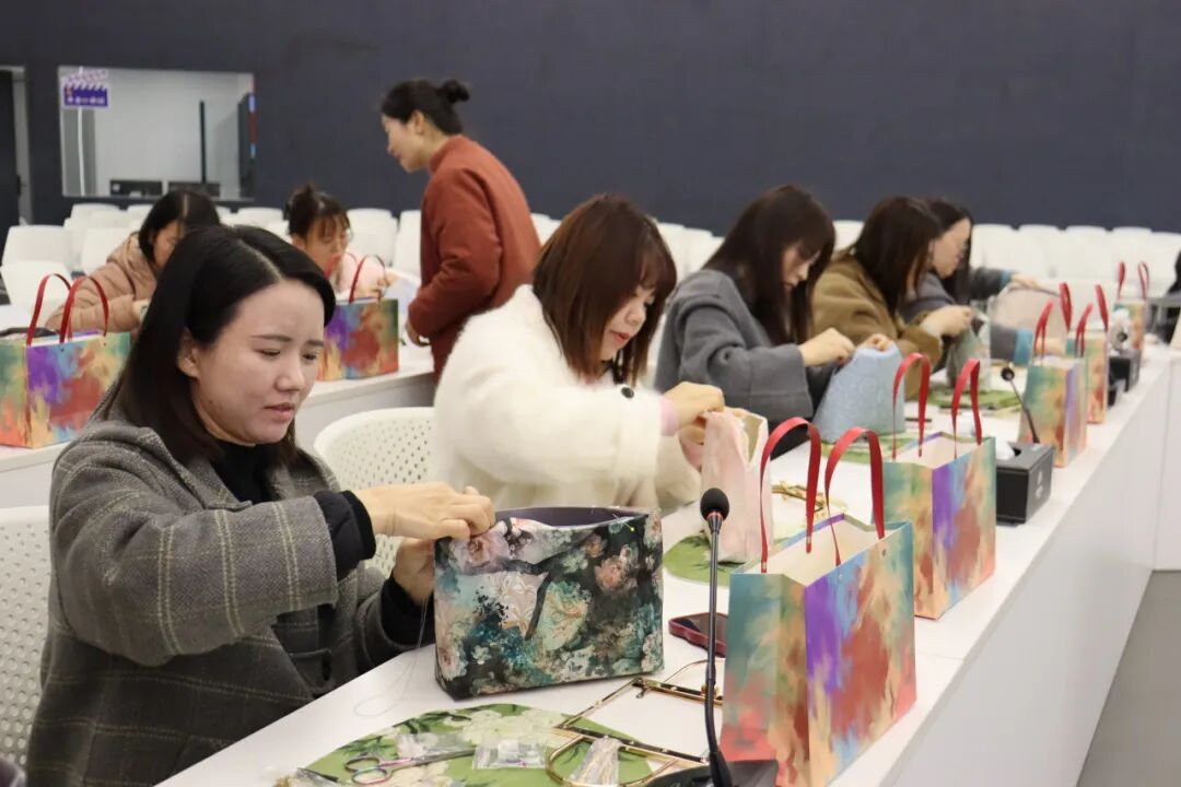活动伊始,老师详细讲解了口金包手作工艺的历史渊源、制作技巧与文化内涵,从材料挑选、针法运用到细节修饰,耐心演示每一个步骤,细致解答大家的疑问,手把手引导女职工们解锁非遗手作技能。大家认真聆听、用心领悟,很快便投入到创作中,现场没有喧嚣的打扰,只有指尖穿梭的灵动与专注。一针一线间,既有对工艺细节的严谨追求,也有对生活美好的细腻表达,更藏着节日里的喜悦与热爱。