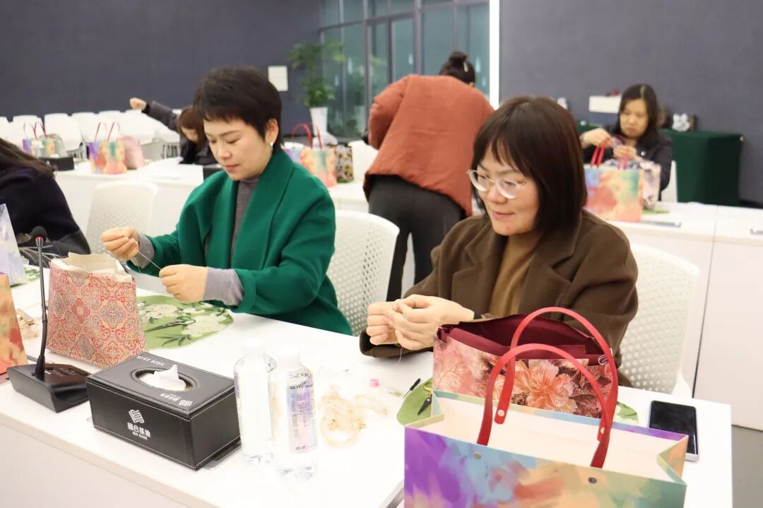 春潮涌动,芳华绽放。在“三八”国际妇女节来临之际,为致敬每一位坚守岗位、绽放光彩的女职工,丰富女职工精神文化生活,传承中华优秀传统文化,3月5日上午,国合基地工会委员会联合宜兴市总工会,精心举办了一场非遗韵味十足的手作雅集活动,让基地以及生态链企业全体女职工暂别忙碌的工作节奏,沉浸于指尖的匠心时光,在一针一线的缝制中,感受传统工艺的温度,邂逅同频相伴的美好,以独特的方式庆祝属于自己的节日。