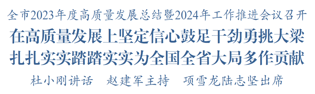 市委书记杜小刚强调,要深入学习贯彻习近平总书记对江苏工作重要讲话重要指示精神和全国两会精神,全面落实全省2023年度高质量发展总结暨2024年工作推进会议要求,拿出“百舸争流、奋楫者先”的拼搏干劲,扛起经济大市的应有担当,在高质量发展上坚定信心、鼓足干劲、勇挑大梁,以扎扎实实、踏踏实实的工作,为全国全省发展大局多作贡献。