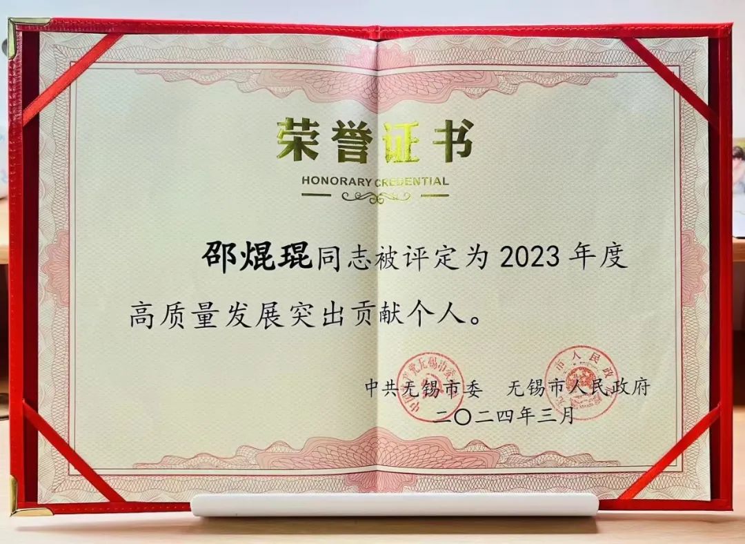 邵焜琨获评无锡市2023年度高质量发展突出贡献个人