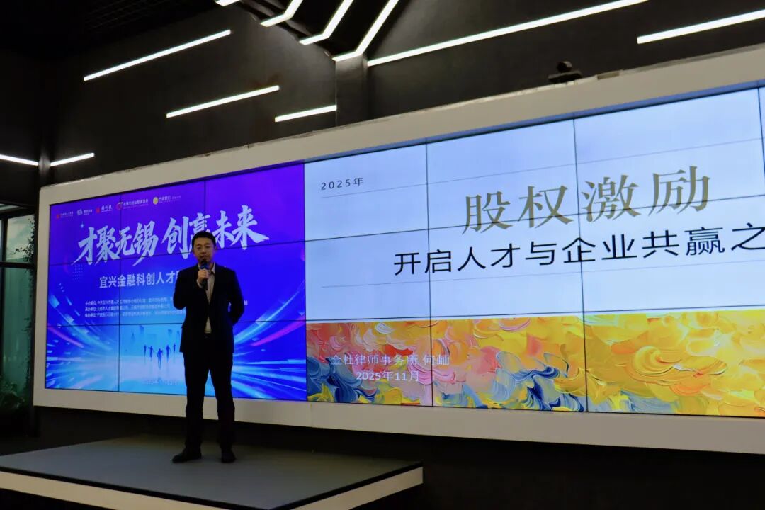 金融赋能 科创共进丨“才聚无锡·创赢未来”宜兴金融科创人才赋能对接会在国合基地圆满举办 发布时间:2025-11-04 所属分类:新闻动态 金融赋能 科创共进11月3日下午,“才聚无锡·创赢未来”宜兴金融科创人才赋能对接会在宜兴国合基地顺利举行。本次活动由中国宜兴环保科技工业园管理委员会、中共宜兴市委人才工作领导小组办公室、宜兴市科技局主办,无锡市人才集团、锡创投、无锡市创投协会及宜兴国合基地承办,宁波银行无锡分行、金杜律师事务所、苏州明博专利代理事务所共同协办。活动以“金融赋能创新,资本助力成长”为主题,汇聚投资机构、银行、律所及创新企业代表等60余人,立足科创企业融资与成长需求,共同探讨科技金融创新与产业协同发展路径,推动科技创新链、资本链、人才链深度融合。 多方协同精准服务 专业赋能助力成长01赋能服务在赋能服务环节,宁波银行无锡分行以“共享平台资源,共建科创生态”为主题,系统介绍“科创贷”等特色金融产品及创新授信模式,通过金融资源共享、融资工具创新与风险共担机制,助力更多科技型中小企业打通融资渠道、加速创新成果转化。随后,金杜律师事务所以“股权激励——开启人才与企业共赢之门”为主题,分享了股权激励在吸引和留住核心人才、促进企业长期发展中的实践经验,从法律与治理角度剖析了股权激励实施要点与典型案例,为企业在激励机制设计与融资规划方面提供系统指导。02路演环节路演环节中,来自智能制造、新材料、节能环保等领域的5家科创企业登台展示项目亮点与融资计划。由国合基地培育的无锡明承智产赋能项目、中国矿业大学电渗透市政污泥深度脱水技术、上海大学太湖蓝藻智能监控项目等参加路演。锡创投、创士锋、云林基金等多家投资机构代表现场互动交流,气氛热烈,多个项目与投资方达成初步合作意向。会议总结作为硬科技孵化载体,未来,国合基地将继续强化资源聚合,深化多方合作,构建“科技+资本+人才+法律”全链条赋能生态,提供一站式服务;继续围绕多战略性新兴产业,精准孵化优质创新项目;继续优化效能,推动“四链”融合,打造全周期培育体系,助力区域科创升级,为经济高质量发展注入动力。 上一条:邵焜琨出席中韩环境技术交流暨合作对话会 上一条:【喜报】国合基地双企入围!菲力环保、国合绿能入选2025年无锡市… 返回 打印