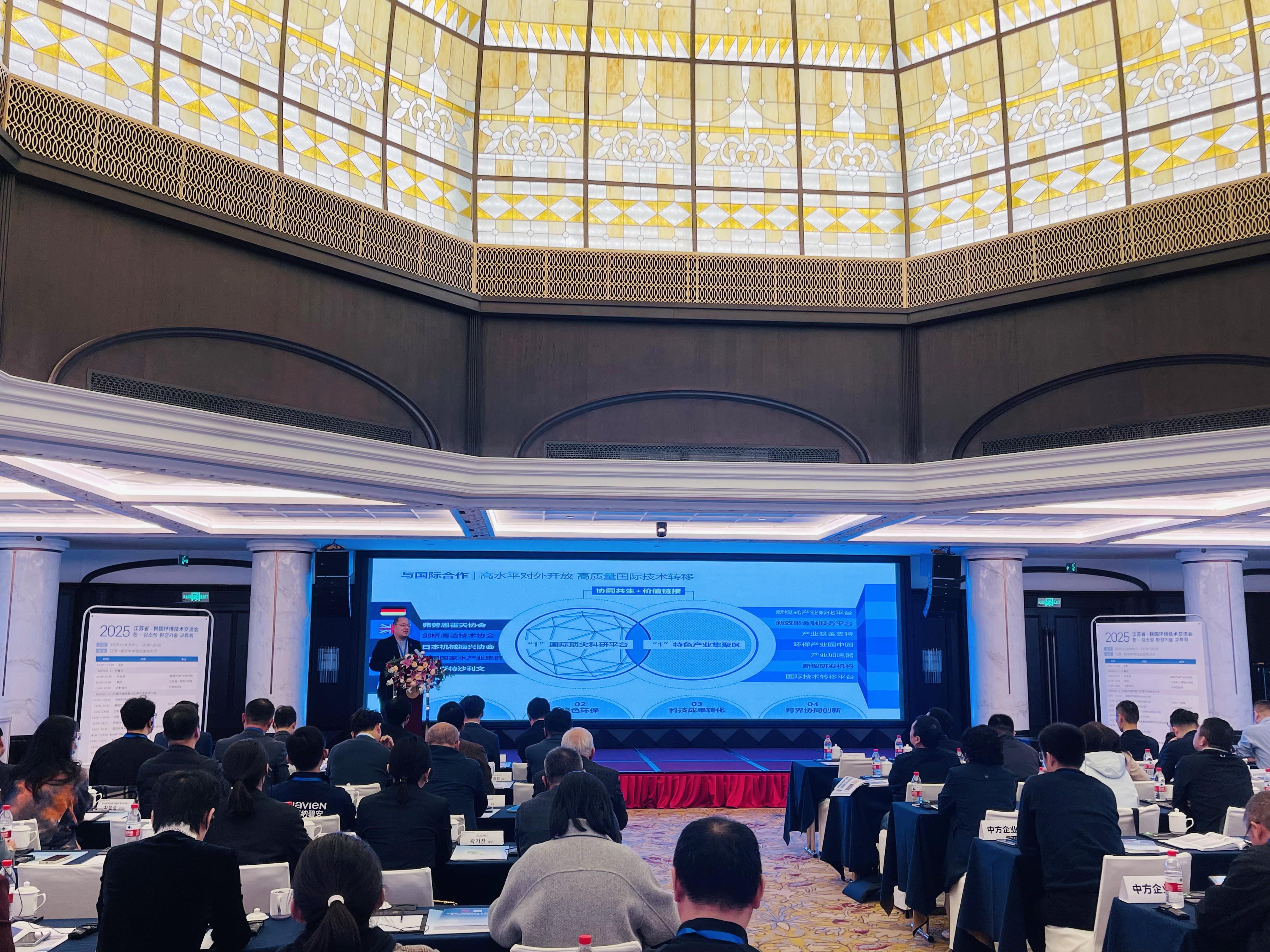 国合基地董事总经理邵焜琨应邀参加,并围绕污染治理技术案例和合作需求、国际环境技术引进孵化模式作主题分享。韩国JIU公司、Q-BIOTECH、嘉纳环保、庆东纳碧安等6家企业高管介绍了土壤修复、高浓度废水处理、VOCs处置、减碳降污等领域的核心技术与实践案例。随后,在会前摸排合作需求基础上,组织中韩企业开展了30多场次一对一洽谈。每家韩国企业展位上,双方企业代表深入对接技术转化、洽谈项目合作,现场多家企业初步达成合作意向。