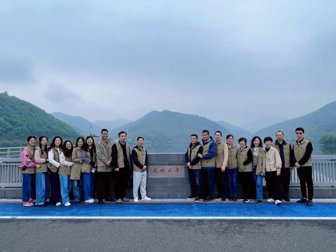 从纪念馆出来后,全体人员漫步于太华镇龙珠水库水利示范区,实地感受了国合基地国际技术引进在省内的试点应用项目。2020 年1月,国合基地参与实施了太华镇龙珠水库饮用水源地蓝藻防控服务项目,是宜兴市水环境治理的“成功担保制”首个成功试点项目。自项目启动以来,龙珠水库水质和藻类数据呈现逐年改善,系统设备运行效果显著。2023 年 12 月,龙珠水库创成省级水利风景区。