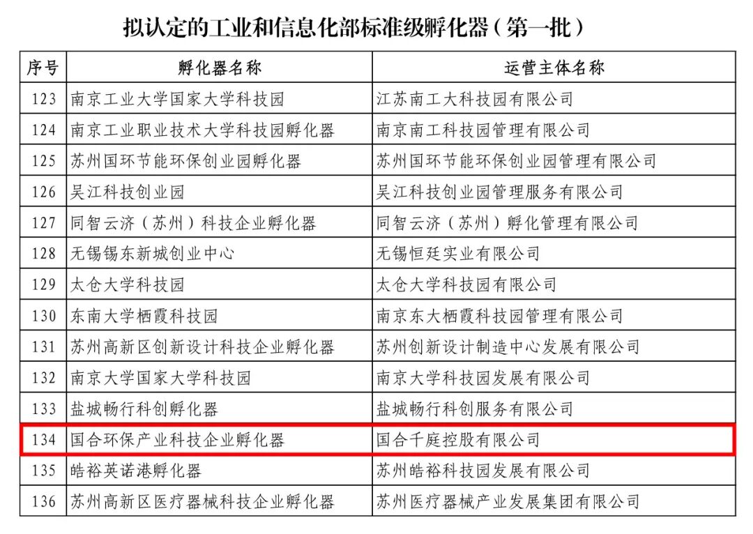 近日,工业和信息化部正式发布《关于工业和信息化部科技型企业孵化器(第一批)名单》,由国合千庭控股有限公司运营的国合环保产业科技企业孵化器(下称 “国合基地”)成功获评科技型企业孵化器(标准级),并凭借优异的综合运营实力入围卓越级答辩环节,标志着基地在绿色低碳领域的孵化能力与行业引领力正式迈入国家第一方阵。